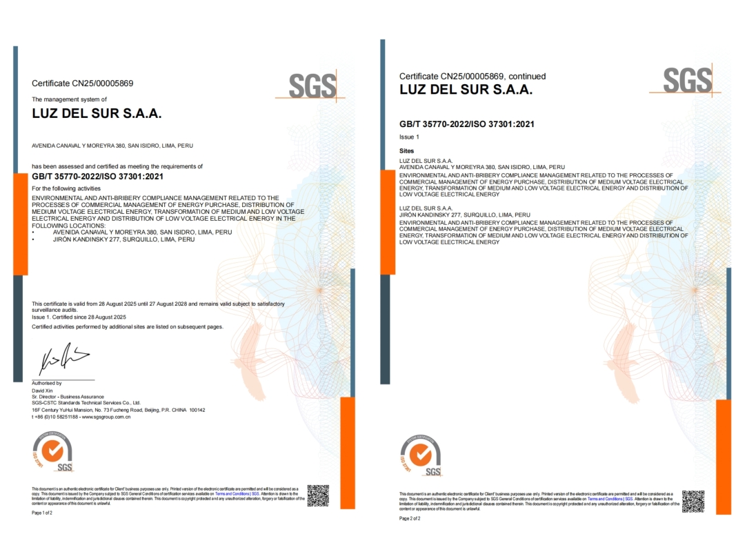 此次获得国际两大评级机构的高等评级,是路德斯公司在成功通过ISO 37301合规管理体系认证,成为秘鲁首家认证电力企业后的再一次突破,为进一步提升公司在国际资本市场的公信力与议价能力,实现高质量发展筑牢了信用根基。