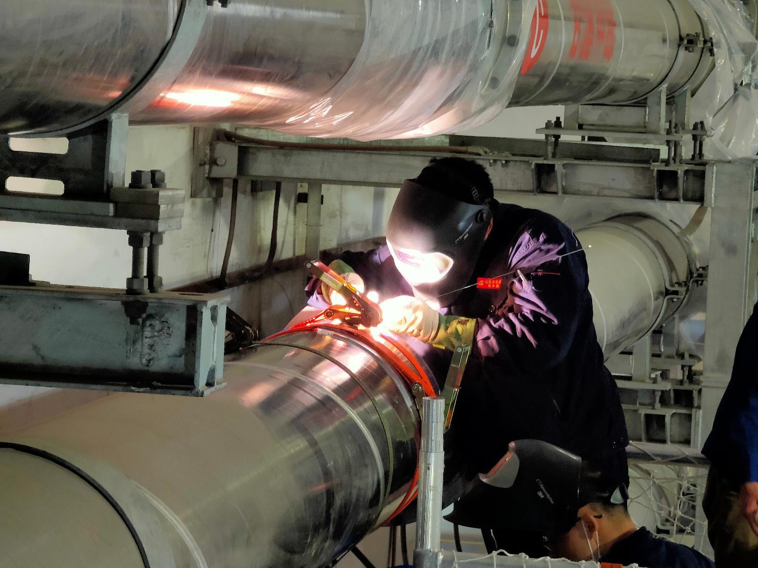 段洪朝,90后检修工匠,GIL薄壁铝合金管道焊接的行家。开孔封焊的盖板准备、封焊作业、焊缝表面着色渗透剂探伤……所有工艺流程都严格把控质量。他把每一条焊缝都当做工艺品对待,每条焊缝粗细均匀,细密美观。2021年4月中旬,最后一条实施了开孔检修的GIL管路顺利通过修后耐压试验。