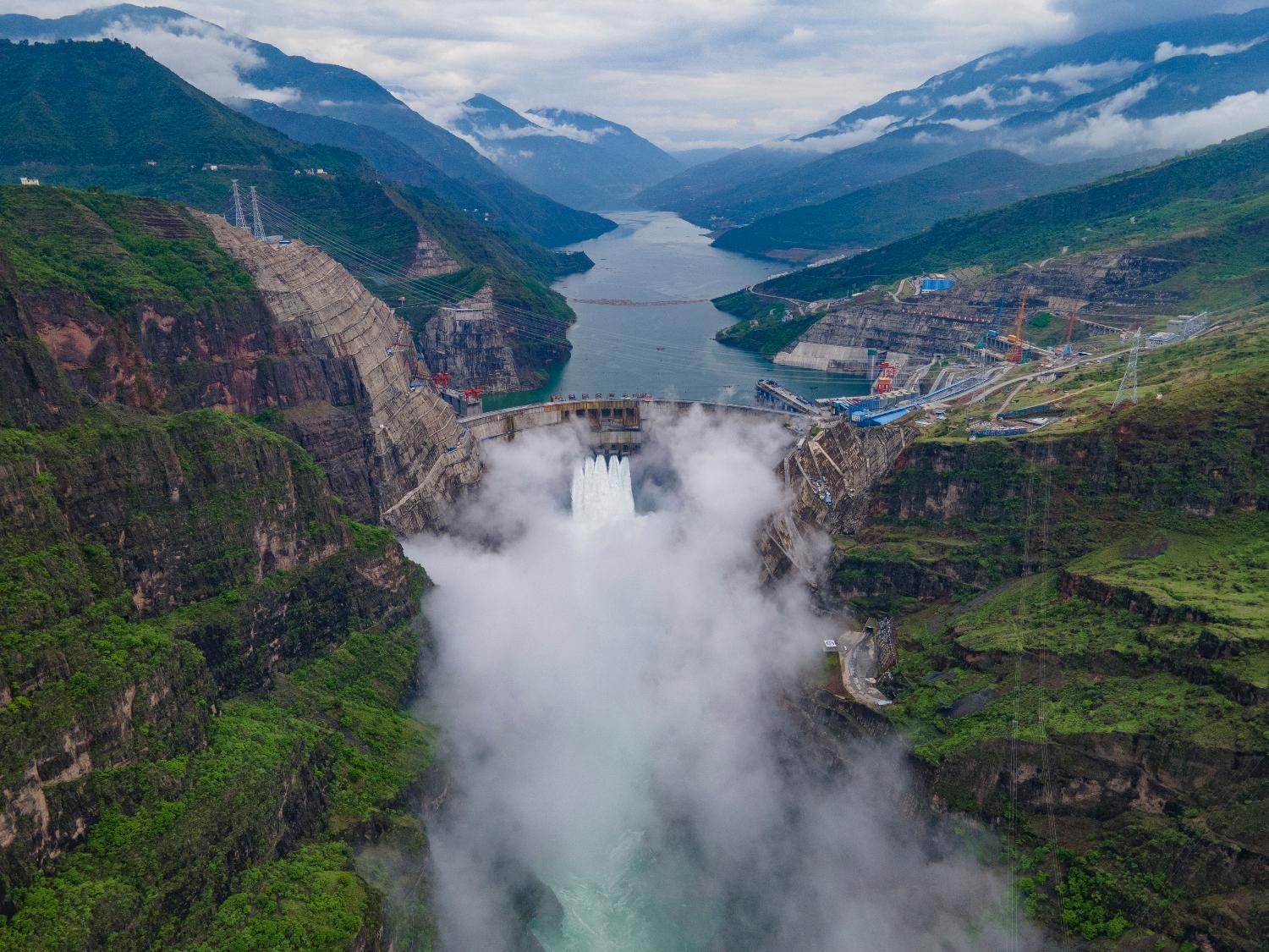 6月28日,金沙江白鹤滩水电站首批百万千瓦水轮发电机组安全准点投产发电,并实现满出力运行;