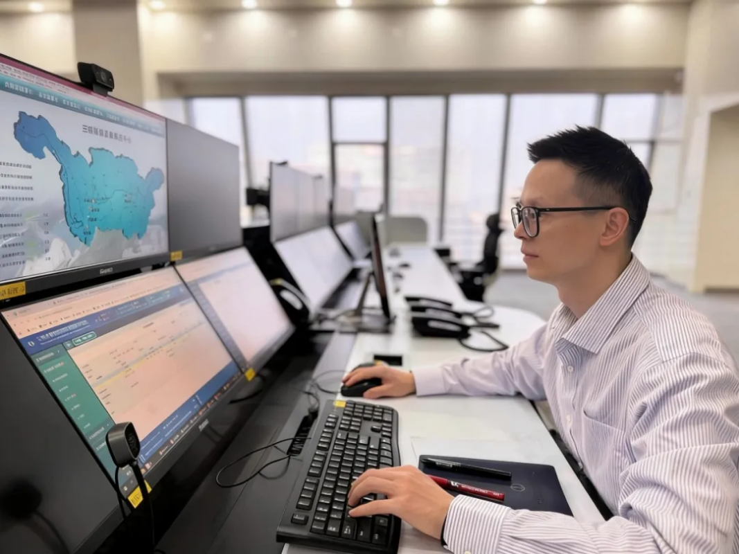 ▲三峡梯调员工使用基于智慧集控技术的管理系统