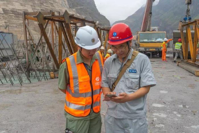 白鹤滩工程建设部安全管理人员正在现场使用安全微信平台 摄影:杜健伟