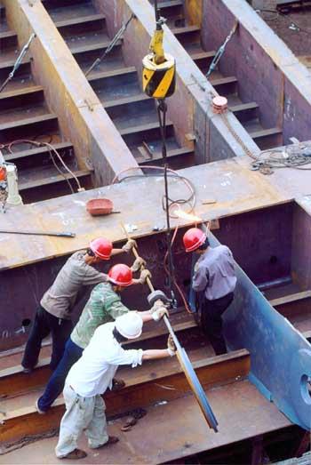 制造阶段(2006年1月―2009年12月)。通过公开竞标的方式选择优秀的制造厂商和土建承包商提供升船机设备和完成土建工程。可以预见到的难题,包括超大型非标机械部件的加工制造,承船厢拼装、组焊工艺控制,塔柱大体积混凝土薄壁结构浇筑工艺控制等,要组织联合科技攻关。