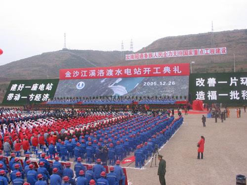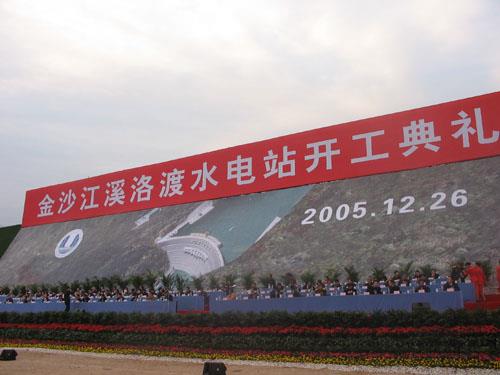 新华社溪洛渡12月26日电(记者李自良 陈凯 陈济朋)金沙水欢腾,高原出平湖。备受嘱目的我国第二大水电站溪洛渡电站工程26日正式开工,这成为我国“十五”期间开工的最后一项巨型水电工程,也是金沙江下游梯级电站的第一个开工建设项目,标志着金沙江干流水电梯级开发迈出了实质性步伐。