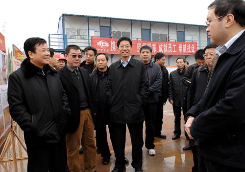 陈飞钟勉一行在屏山新县城建设工地查看了屏山中学和锦屏镇农村移民过渡房安置建设情况,观看了屏山移民迁建宣传展板。屏山县委县政府领导向陈飞总经理和钟勉副省长介绍了新县城建设情况。