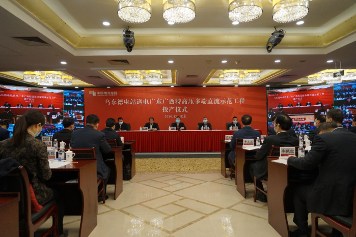 本网讯(王磊)2020年12月27日,世界首个特高压多端混合直流工程——乌东德电站送电广东广西特高压多端直流示范工程(简称“昆柳龙直流工程”)正式投产运行。在投产仪式北京主会场,国家能源局党组书记、局长章建华下达投产指令,国务院国资委党委委员、副主任袁野出席,南方电网党组书记、董事长孟振平主持并宣读国务委员王勇的批示,三峡集团党组副书记、总经理王琳出席。广东、广西、云南、贵州有关负责同志在视频分会场出席。