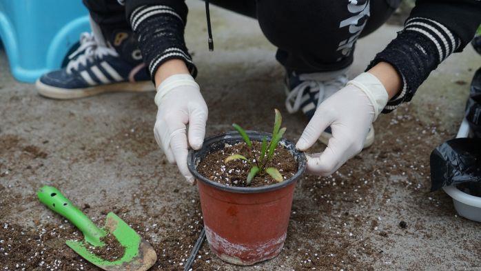 丰都车前是三峡库区特有珍稀草本植物,因本世纪初在重庆市丰都县首次被发现而得名。它春夏休眠,秋冬生长繁殖,眼下正值生长期。它的栽种,并不像其他农作物那样直接播在土地里,而是要把已培育好的幼苗,一株株地移栽到育苗盆。据悉,育苗盆中的泥土,是模拟丰都车前原始生长环境专门配制的营养土,有利于其更好地生长。