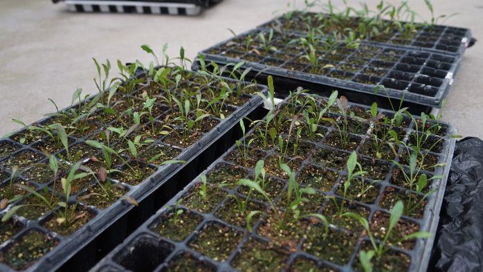 ▲2022年夏天下种的丰都车前,已长成幼苗,科研人员对幼苗做好标记 摄影:孙钰芳