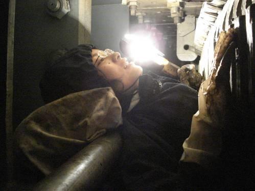 此项工作需要两个人进行配合完成,一个人在外面,一个人则要钻进发电机线棒后端,由于空间狭小,里面的人只能躺在冰冷的钢板上,由于定子线棒下端部距下盖板的距离仅有大约30厘米,稍微胖一点的人就很难躺下去。在狭小的空间里,伴随着微弱的灯光穿针引线,一躺就是一整天。加之穿线的孔隙大小不均,最大的高度不过2毫米,而最小的根本看不到缝隙,就是在此等恶劣的环境下,每根线棒绑4根绑线,则完成所有的绑线工作穿拉绑线的次数:792×4=3618次,每次穿拉的绑线一般的长度为15米,那么工作完成后穿拉绑线的长度:792×4×15=47520米。
