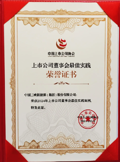 自2021年上市以来,三峡能源董事会依法合规运作,全力稳运行拓市场、谋创新促发展、抓改革强管理、防风险守底线,引领公司迈向高质量发展;同时不断优化环境、社会和公司治理(ESG)管理组织架构,制定《环境、社会及治理工作管理办法》,编发ESG专项报告,探索建立公司ESG指标体系并编制《ESG指标管理手册》,ESG治理能力显著提高。此次获奖体现了资本市场对三峡能源董事会规范运作和ESG突出表现的充分认可。