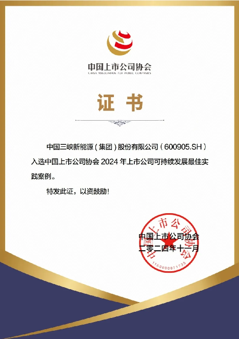 本次系列评选活动由中国上市公司协会主办,覆盖沪深北三家交易所5000余家上市公司。“董事会最佳实践案例”旨在促进上市公司董事会合规有效运作,发挥先进治理模式示范作用,提升公司治理效能,三峡能源已连续两年获评该奖项;“可持续发展最佳实践案例”旨在充分展现上市公司可持续发展工作水平和进展,引导上市公司对标对表、互学互鉴,积极引导上市公司高质量发展。