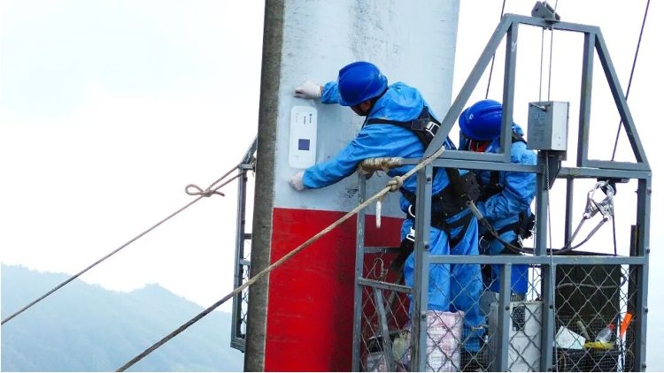 ▲ 运维人员正在为叶片贴上“电子皮肤”