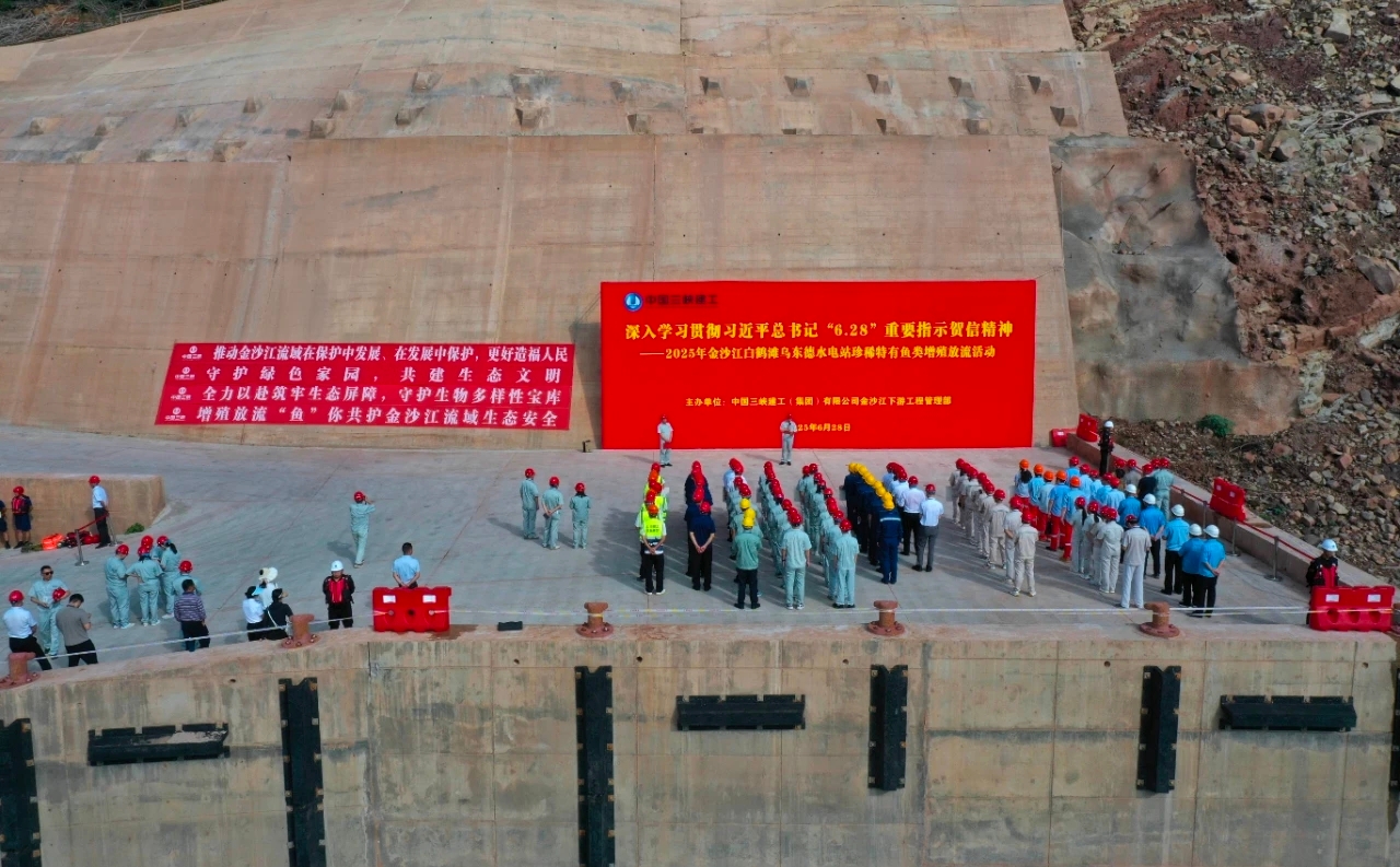 ▲2025年金沙江白鹤滩、乌东德水电站珍稀特有鱼类增殖放流活动现场(本文摄影:陈旋)