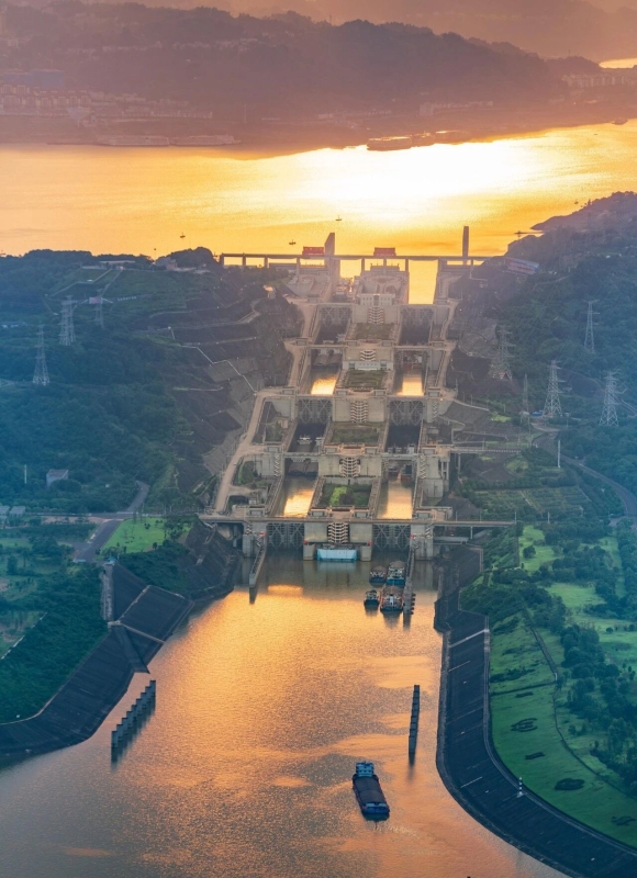 ▲三峡双线五级船闸 摄影:汤伟