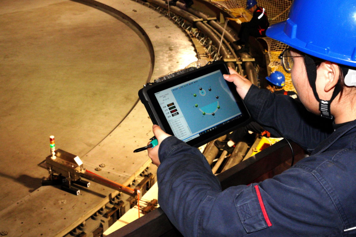 ▲ 转子吊装自动插板及智能预警装置终端,实时接收数据反馈。摄影:汤伟