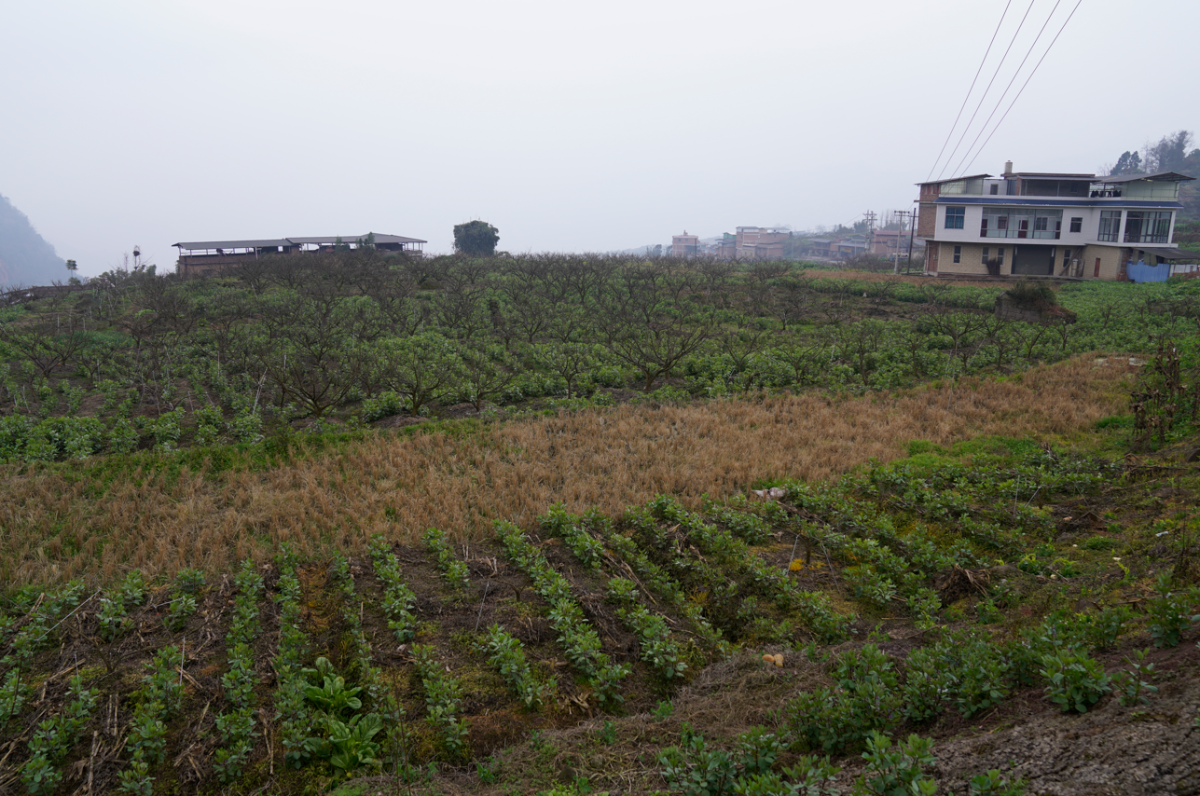 ▲李子树下套种的蚕豆 摄影:杜健伟