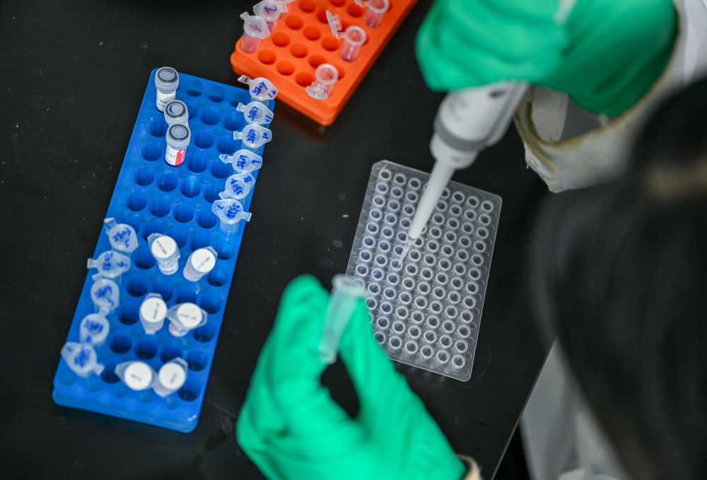 ↑ 4月10日,科研人员在湖北省宜昌市三峡集团长江生物多样性研究中心实验室工作。